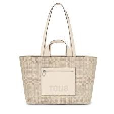Bolso capazo mediano TOUS Cecilia de lona con estampado en color beige combinada con detalles de piel sintética. Cierre de cremallera. Un bolsillo frontal abierto y otro con cremallera. Bolsillo interior abierto. Asas fijas de mano y hombro. Medidas (alto x ancho x fondo): 27 x 49 x 15 cm.