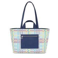 Bolso capazo mediano TOUS Cecilia de lona con estampado en color azul marino combinada con detalles de piel sintética. Cierre de cremallera. Un bolsillo frontal abierto y otro con cremallera. Bolsillo interior abierto. Asas fijas de mano y hombro. Medidas (alto x ancho x fondo): 27 x 49 x 15 cm.