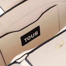 Bolso capazo pequeño TOUS Lucia de lona con detalles en poliuretano en color beige. Cierre de botón magnético. Bolsillo interior abierto. Asas fijas de hombro y asa bandolera ajustable y extraíble. Medidas (alto x ancho x fondo): 13,5 x 27 x 8 cm.