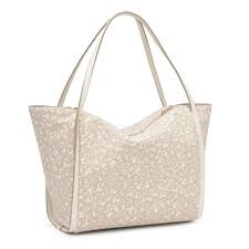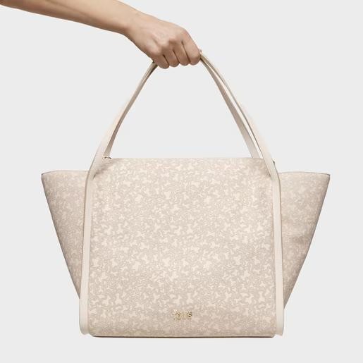 Bolso capazo grande Kaos Mini Lines de lona con detalles de piel sintética en color beige. Cierre de cremallera. Bolsillo interior con cremallera. Asa fija de hombro. Medidas (alto x ancho x fondo): 33 x 48 x 18,5 cm.