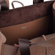 Bolso capazo mediano TOUS colección Leissa de piel bovina en color marrón. Cierre con cordón de piel y mosquetón. Asas de mano y asas de hombro. Bolsillo interior plano. Bolso incluye un colgante decorativo en color rojo. Medidas: 24x31x14,5 cm.