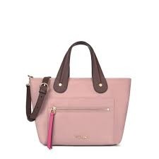 Bolso capazo pequeño Tous de la colección Shelby de vinilo con efecto piel combinado con nylon reciclado en color rosa. Cierre con cremallera. Asa de bandolera ajustable, extraíble y dos asas de mano. Bolso cuenta con 1 bolsillo exterior con cremallera, 1 bolsillo exterior plano y 2 bolsillos interiores: 1 plano y 1 con cremallera. Medidas: 34 x 20 x 15cm.