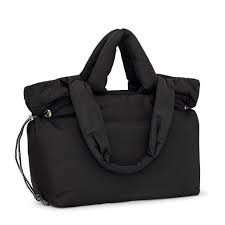 Bolso capazo grande TOUS Carol Soft de poliéster reciclado en color negro. Cierre de cremallera. Bolsillo interior con cremallera. Asas fijas de mano y hombro. Medidas (alto x ancho x fondo): 27 x 48 x 17,5 cm.