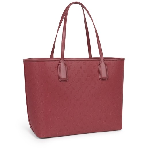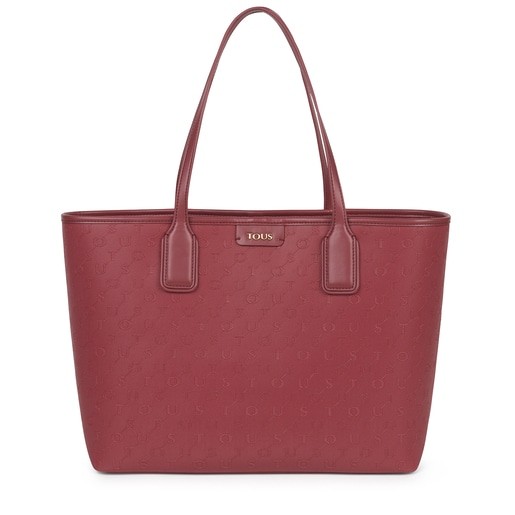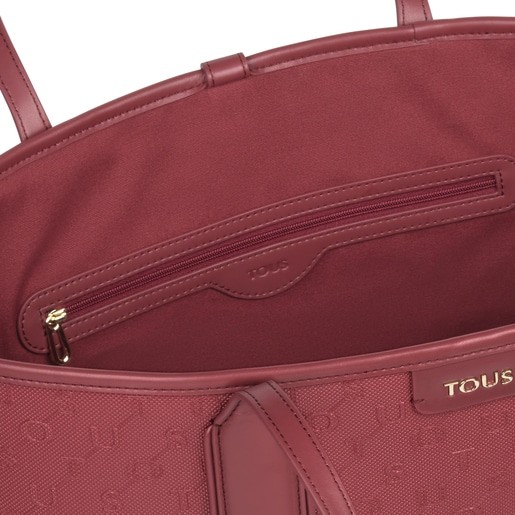 Bolso capazo grande Tous de la colección Script Day de lona combinada con detalles en piel sintética en burdeos. Asas largas de hombro, bolsillo plano interior. Cierre con boton magnetico. Medidas: 15 x 50 x 29 cm.