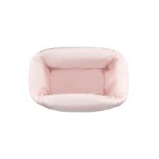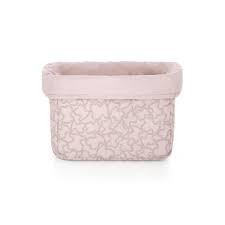 Cesta Baby TOUS de tela acolchada en suave algodón estampado Home Kaos. Práctica para organizar o guardar accesorios, la ropa o los juguetes del bebé. COMPOSICIÓN: 100% Algodón, Relleno: 100% Poliéster. Color rosa. MED.: 33x21x20cm. Certificado OEKO/TEX*. Fabricado en la UE.