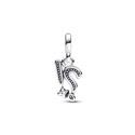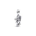 Charm Cologante Pandora Me ?! fabricado en plata de primera ley compuesto por un abalorio en forma de interrogación y un abalorio en forma de exclamación cuyo punto está formado por una circonita brillante.