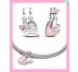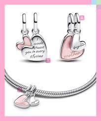 Charm Colgante Dividible Madre e Hija. Diseñado para compartir, este charm de plata de ley presenta dos corazones: uno pequeño y otro más grande, recubiertos de nácar sintético rosa. El corazón grande dice "Madre" en un lado y "Te elegiría en cada vida" en el otro; el corazón pequeño dice "Hija" en un lado.