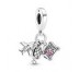 Charm Colgante Pandora Avión, Globo y Maleta fabricado en plata de primera ley. Se trata de un original charm ideal para las personas amantes de la aventura adornado con un avión, un globo terráqueo y una maleta con esmalte rosa.