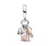 Charm Pandora Llave, Candado & Corazón en 2 Tonos para mujer fabricado en plata de primera ley con abalorios colgantes en forma de llave, candado en aleación de metales bañados en oro rosa y un corazón con circonitas brillantes.