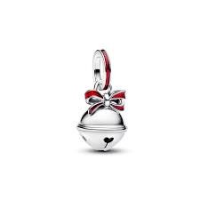 Charm Pandora Cascabel Navideño 794246c01: Colgante con forma de campana navideña fabricado en plata de primera ley con esmalte rojo.
