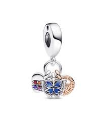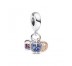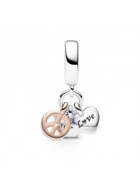 CHARM PANDORA COLGANTE TRIPLE ARCOIRIS MARIPOSA & PAZ 782572C01. Charm Colgante Triple en plata de primera ley y con un recubrimiento electrolítico en oro rosa de 14k Corazón Arcoíris en Dos Tonos, Mariposa & Paz adornado con cristales artificiales y circonitas cúbicas, y grabado "Freedom" and "L❤ve" and "Peace"