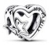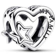 Charm Pandora Corazón en Filigrana Famlia & Estrella para mujer de la colección Navidad 2023 fabricado en plata de primera ley adornado con grabado "MY FAMILY" y "MY UNIVERSE"