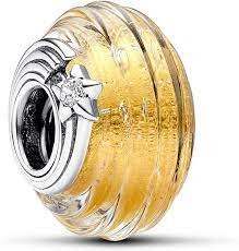 Charm Pandora Cristal de Murano Acanalado Estrella Fugaz para mujer de la colección Navidad 2023 fabricado en plata de primera ley con cristal de murano amarillo y adornado con circonitas cúbicas transparentes.