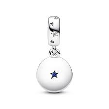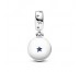 Charm Colgante Doble Pandora Amor Familia para mujer de la colección Navidad 2023 fabricado en plata de primera ley y adornado con circonitas cúbicas transparentes, cristales artificiales de color azul y grabado "Family", "but they're ALWAYS there".