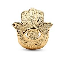 Charm Pandora Mini Mano de Fátima Textura para mujer de la colección Otoño 2025 fabricado en aleación de metales bañados en oro amarillo de 14kt en forma de Mano de Fátima con acabado texturizado.