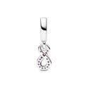 Charm Colgante Pandora Infinito Brillante para mujer de la colección Avance de Otoño 2023 fabricado en plata de primera ley en forma de Infinito compuesto por circonitas brillantes en color rosa.