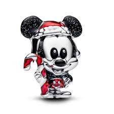 Charm Pandora Mickey Mouse Navideño de la colección Disney de Pandora fabricado en plata de primera ley y esmalte rojo y negro.