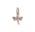 Se presenta en Pandora Rose, una aleación única de metales con un recubrimiento de oro de 14K, y embellecido con detalles de circonitas cúbicas en las alas y los ojos.