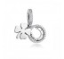 Charm colgante PANDORA Día de la Suerte en plata de primera ley, adornado con circonitas cúbicas transparentes. Atrae la buena suerte con este delicado charm con la hoja de trébol de cuatro hojas y la herradura a tupulsera.