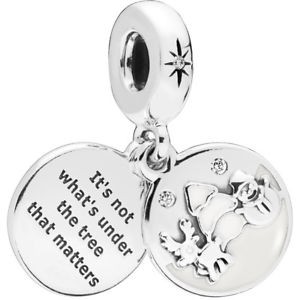 Charm colgante PANDORA Navidades Perfectas en plata de primera ley, adornado con circonitas cúbicas transparentes y grabados "It's not what's under the tree that matters" and "It's who's gathered around it“.CHARMS PANDORA 797562