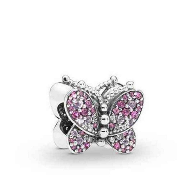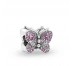 Charm en plata de ley Mariposa Rosa Deslumbrante adornado con circonitas cúbicas transparentes y cristal rosa y cereza.