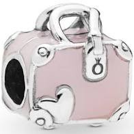 Charm Pandora Maleta en plata de primera ley, adornado con esmalte rosa y grabado “Love travels".
