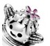 Charm en plata de primera ley presenta un bonito cactus sonriente en una pequeña maceta con la inscripción "Free hugs" (Abrazos gratis). También presenta una flor rosa en la parte superior y una textura de espinas.