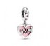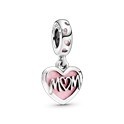 charm colgante doble en plata de primera ley. El charm presenta la parte trasera embellecida con esmalte de color rosa aplicado a mano, mientras que en la parte delantera del disco presenta un grabado de la palabra ‘MUM’ (Mamá, en español) con un detalle en forma de corazón. La anilla se presenta con circonitas cúbicas de color rosa que aporta brillos al charm. La inscripción de la parte trasera del colgante dice ‘I love you’ (Te quiero, en español), lo que lo convierte en el regalo ideal para tu madre.