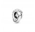 Separador Pandora fabricado en plata de ley. Está formado por 2 circunferencias entrelazadas, una de ellas con el logo Pandora y la otra con múltiples corazones que darán un toque enternecedor a tu pulsera.