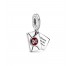 Charm colgante Pandora Carta en plata de primera ley adornado con esmalte rojo y negro y grabados