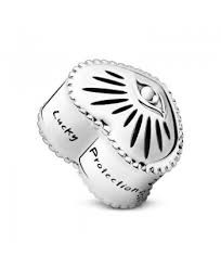 Charm Pandora Corazón Ojo que todo lo Ve fabricado en plata de primera ley en forma de corazón posee el grabado "Lucky Protection" en la parte superior. Este charm está inspirado en el símbolo del Ojo que todo lo ve, lleno de simbología protectora este amuleto místico te librará de todo tipo de mala suerte.