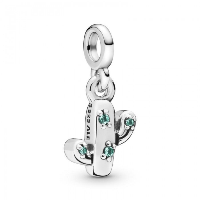 Charm colgante Mi Cactus en plata de ley de la colección Pandora Me. Se trata de un original y divertido charm en forma de cactus caracterizado con cristales verdes que darán color y luminosidad a tu pulsera.
