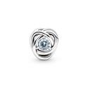 Charm Pandora Eternity Agua Marina compuesto por círculos elípticos en plata de primera ley con un radiante cristal en color agua marina en su parte central.
