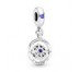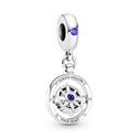 Charm Colgante Pandora Brújula Giratoria fabricada en plata de primera ley con circonitas azules. Se trata de un charm colgante que contiene una circunferencia en cuyo interior encontramos una brújula giratoria y la inscripción "Always Follow Your Heart"