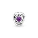 Charm Pandora Eternity Rosa compuesto por círculos elípticos en plata de primera ley con un radiante cristal en color rosa en su parte central.
