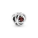 Charm Pandora Eternity Rojo compuesto por círculos elípticos en plata de primera ley con un radiante cristal en color rojo en su parte central.