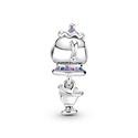 Charm Colgante Pandora Sra. Potts y Chip La Bella y la Bestia de la colección Disney de Pandora fabricado en plata de ley con esmalte en colores lila, rosa, azul y negro.