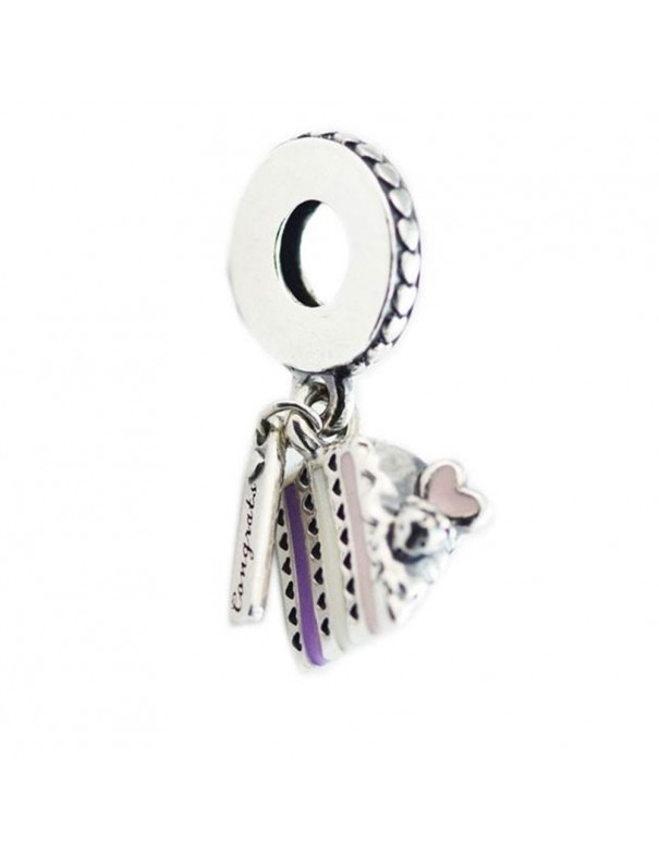 Charm colgante en plata de ley Tarta de Celebración 797258ENMX. Este charm con forma de Tarta de Celebración está adornada con esmalte rosa, morado y plateado. Recuerda ese día tan especial con esta pieza única con la grabado "Congrats".