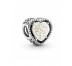Charm Pandora Corazón Filigrana Y Árbol De La Familia 799413C01, en plata de primera ley 925mls y nácar blanco. Grabación "Family forever and always".