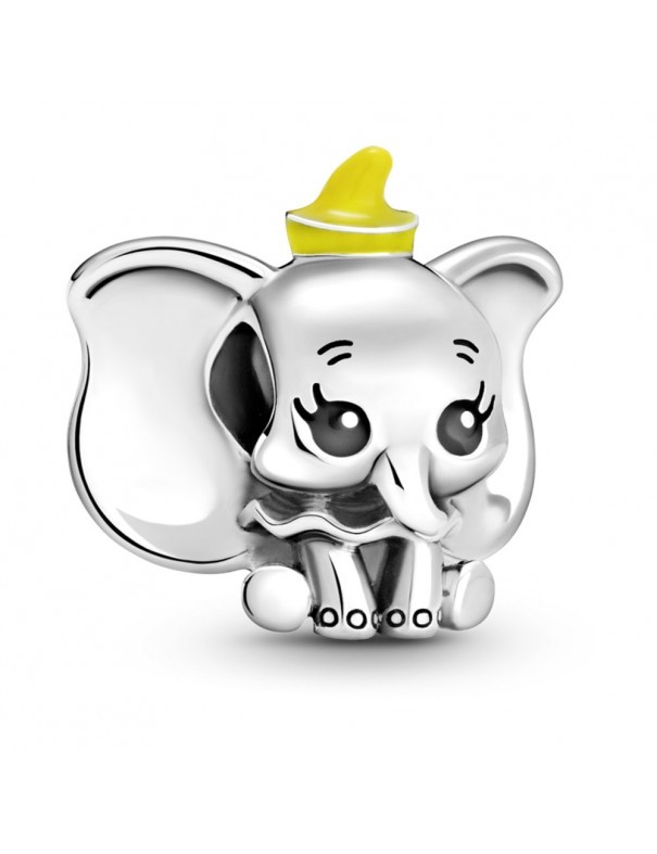 Charm Pandora Dumbo De Disney 799392C01, en plata de priemra ley 925mls y decorado con esmalte negro y amarillo.