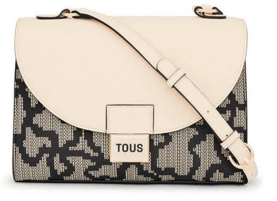 Bolso city mediano TOUS Kaos Pix de lona con estampado en color negro y beige. También incorpora detalles de piel sintética. Bolso con dos compartimentos separados por un bolsillo con cierre de cremallera. Cierre de solapa con dos botones magnéticos. Bolsillo trasero abierto. Asa bandolera ajustable. Medidas (alto x ancho x fondo): 19 x 27 x 13 cm.