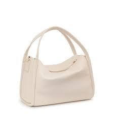 Bolso city TOUS Miranda de piel vacuna con certificación LWG en color beige. Cierre de cremallera. Bolsillo interior abierto. Asa de hombro fija y asa bandolera ajustable y desmontable. Medidas (alto x ancho x fondo): 20 x 27 x 14,5 cm.