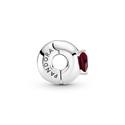 Clip Pandora Corazón Rojo Solitario fabricado en plata de primera ley con un cristal rojo en forma de corazón en su parte frontal.