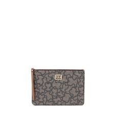 Bolso clutch TOUS Kaos Icon de lona hidrófuga combinado con vinilo efecto piel, estampado kaos en varios en multi negro. Bolso cuenta con una asa corta de mano, un bolsillo interior plano. Cierre con cremallera. Medidas. 3,5 x 24 x 15,5 cm.