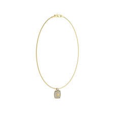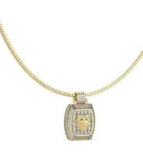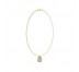 Colgante con cadena Guess de la colección Lion King con placa en acero IP dorado recubierta de circonitas en color blanco y la cabeza del león en el centro.
