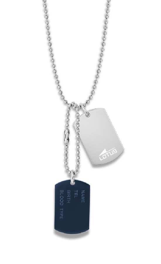 COLGANTE LOTUS EN ACERO DOS PLACAS MILITAR AZUL Y PLATEADA