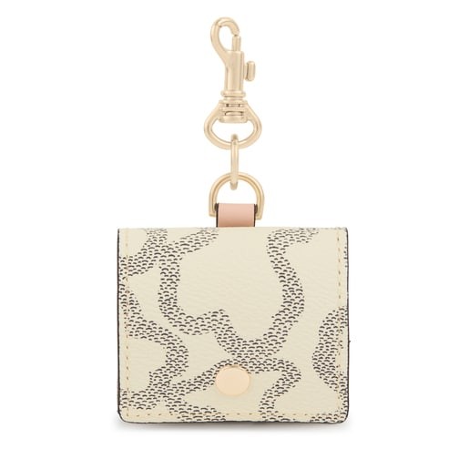 Funda mediana para AirPods TOUS Kaos Legacy de lona hidrófuga con estampado Kaos en color beige. También incorpora detalles en piel vacuna de color rosa pálido. Esta funda es ideal para colgar en el bolso y tener siempre a mano tus AirPods PRO y de 3a generación u otros auriculares inalámbricos. Medidas (alto x ancho x fondo): 5,5 x 6 x 2 cm.