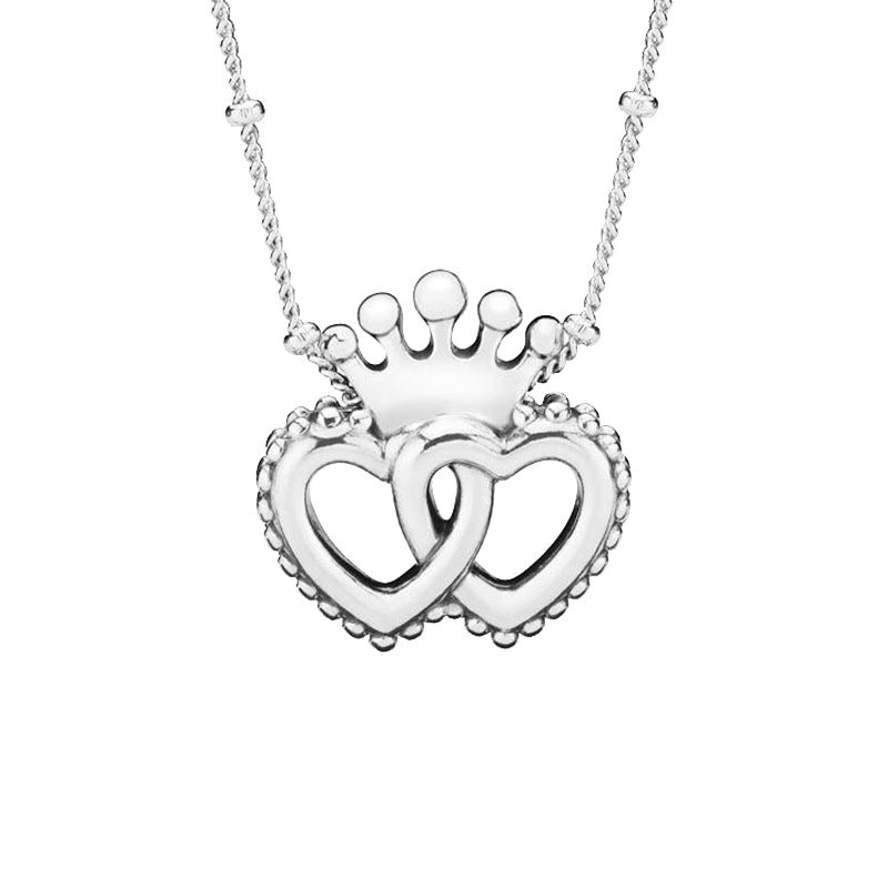 Collar Pandora en plata de ley Corazones Reales Unidos y cadena de 45 cm ajustable a 42 y 38.