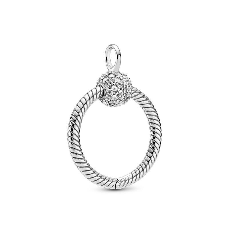 Colgante Pandora Moments en forma de O, fabricado en plata de primera ley. Luce este elegante colgante al que le podrás incluir tus charms favoritos y lucirlos allá donde vayas.