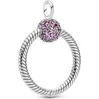Colgante O Pandora Moments en Pavé en plata de primera ley adornado con zafiro sintético rosa y circonitas rosas.